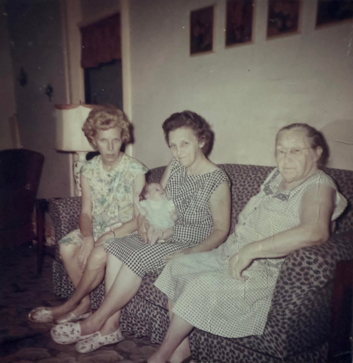 «Эта малышка на фото — моя жена. В целом на снимке четыре разных поколения, слева направо»