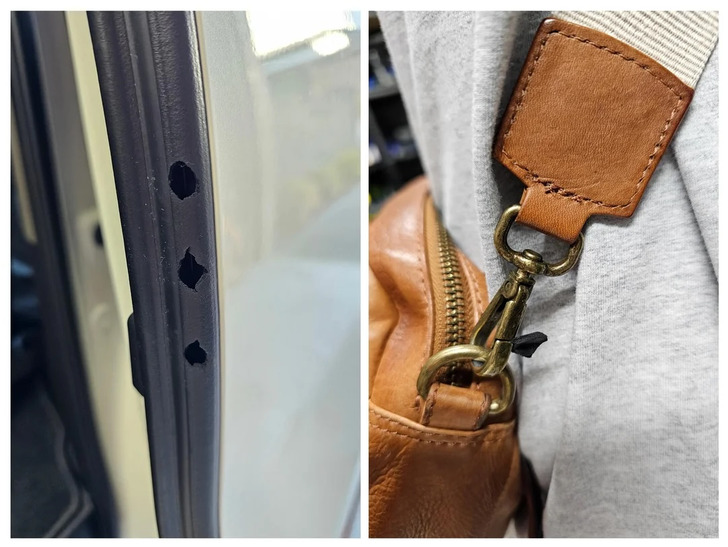 «Месяцами ломал голову над тем, откуда в машине взялись странные дырки. Сегодня нашел крайнюю. Оказалось, жена! Крючок от сумки цеплялся за резинку, когда она пристегивала ребенка в автокресле»