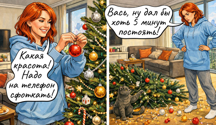 Домашние любимцы порой добавляют нашей жизни огонька. Обычно у них совершенно другие представления о том, что нужно делать с цветами, вазами, гирляндами и елкой