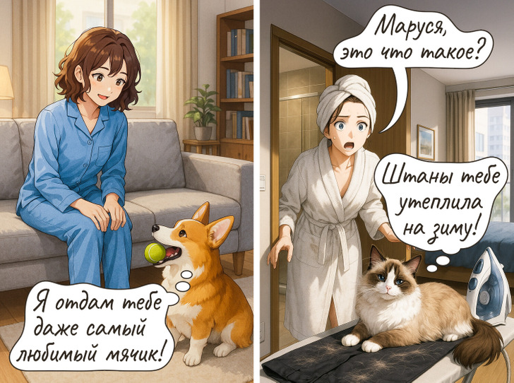 Пойду-ка, пожалуй, спрошу у своего собакена, почему он ведёт себя точь в точь как кошки на всех (вообще всех!) картинках здесь 🤔😁