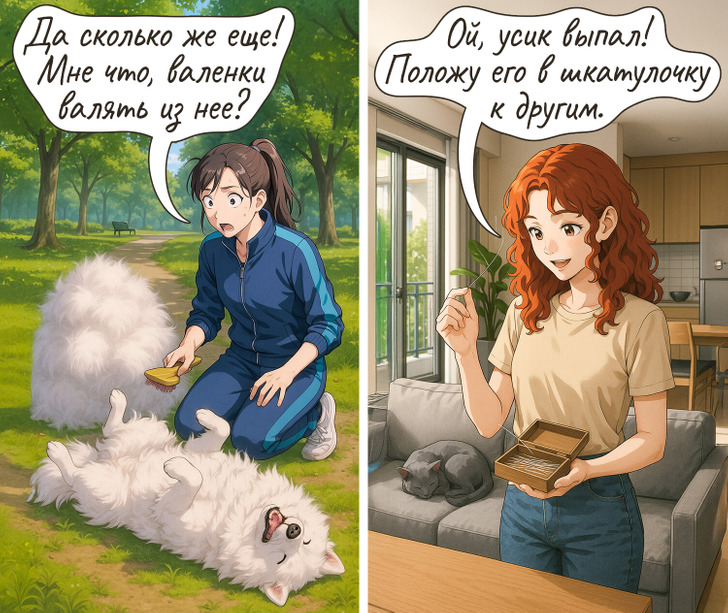 А вы узнали в этих комиксах своих любимцев? Или же у вас все совсем не так? Делитесь в комментариях их фото и историями того, как вы нашли друг друга!