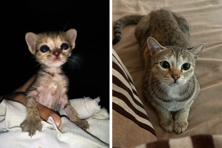 «Когда я нашла этого малыша год назад, он едва дышал. На фотках видно, какой путь мы прошли»