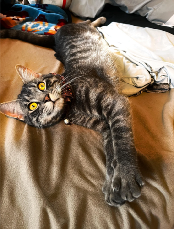 «Муж съездил на рыбалку и нашел там болотного котенка. Оставили этого чертенка, потому что он выглядел так, будто его молнией шибануло. Любим его до ужаса»