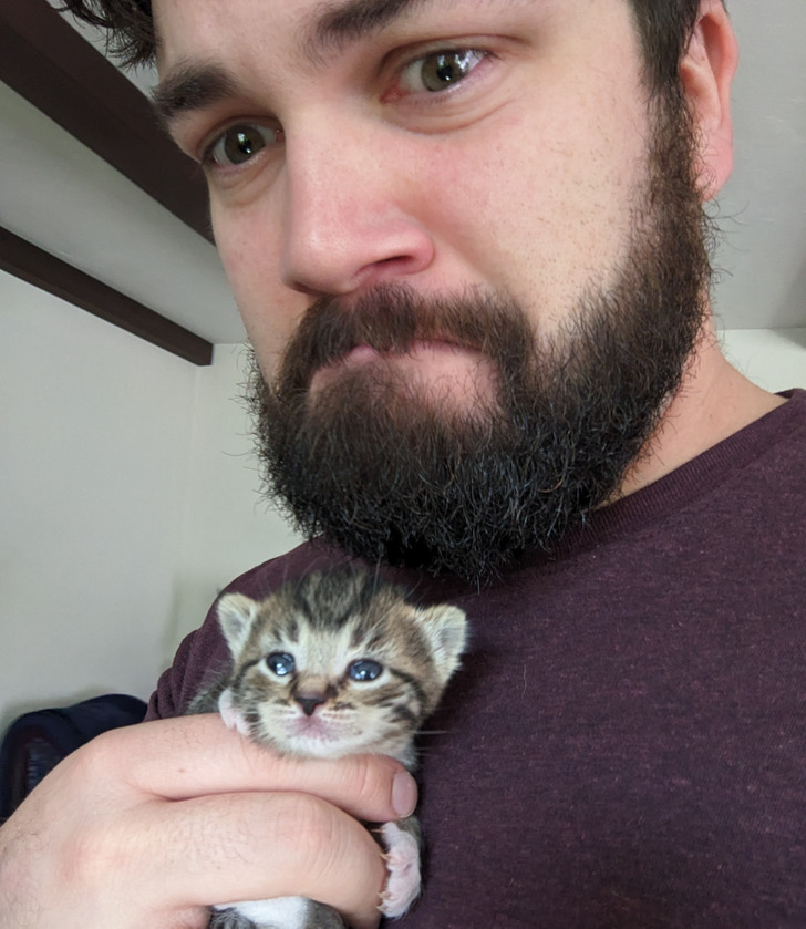 «5 лет назад мы с сестрой нашли этого малыша. Он замерзал и так жалобно мяукал! Сейчас он тот еще надоедливый чудик, но его обожаем»