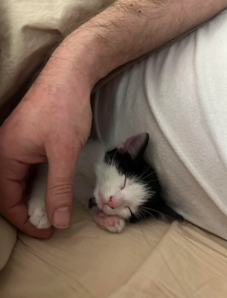 «Наш котенок улегся спать с нами в свою первую ночь дома»