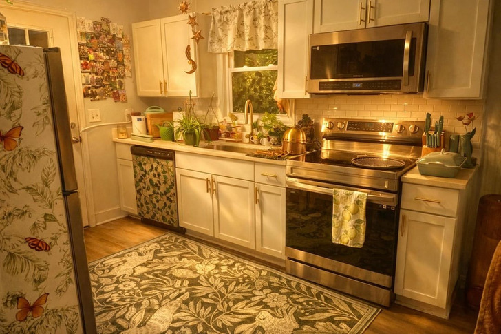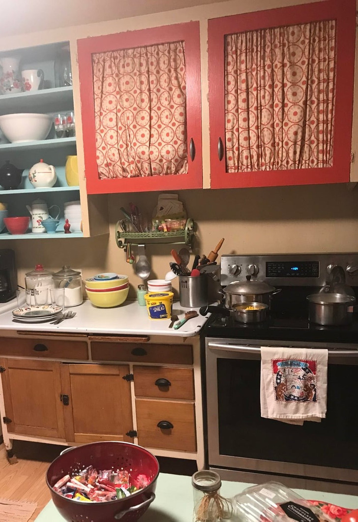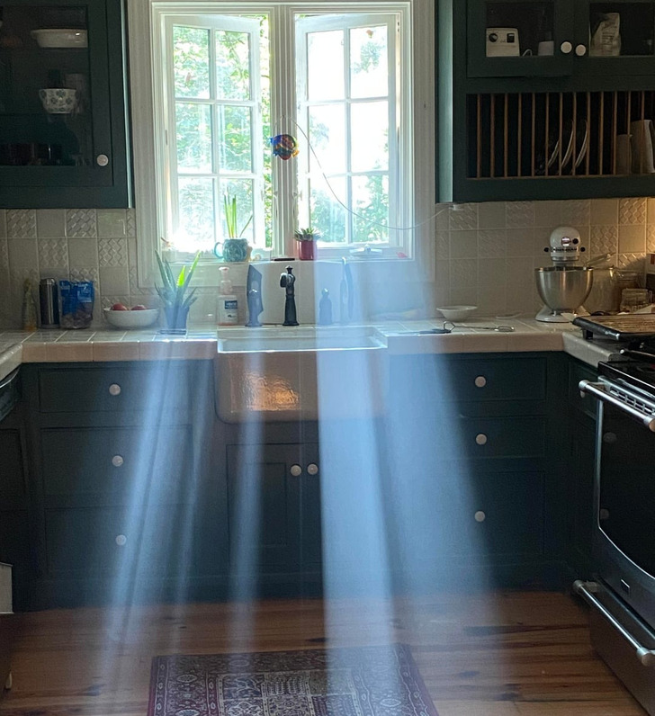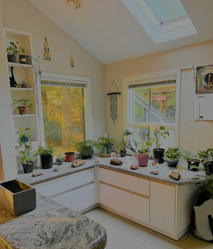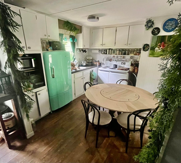 - Ваша кухня просто восхитительна! В ней царит прекрасная атмосфера, начиная от растений и заканчивая зеленым холодильником и этими милыми светильниками над раковиной! © Imaginary_Attempt_ / Reddit