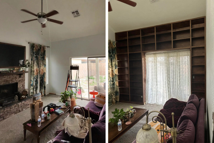 «Библиотека для родителей жены. Сделал это в качестве вызова самому себе. Березовая фанера, отделка из тополя и морилка»