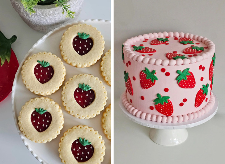 «Испекла печенье и торт на первый день рождения малыша. Печенье песочное, с начинкой из клубничного и малинового джема, а торт ванильный, с ягодной начинкой»