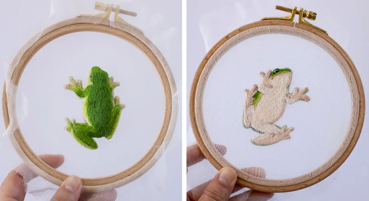 «Двухсторонняя вышивка с лягушкой на окне»