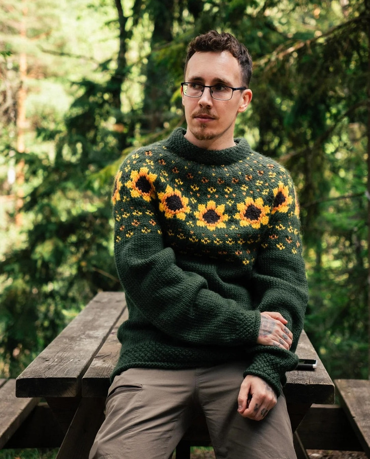 «Захотел связать уродливый свитер. Вот он! Шапку тоже связал сам»