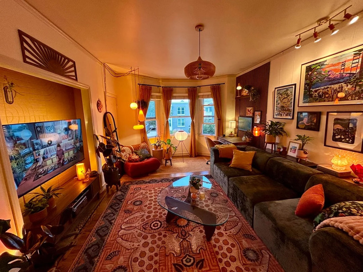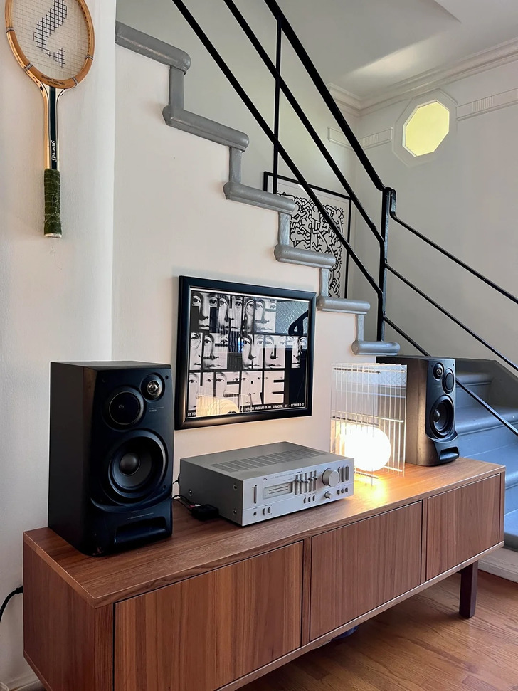«Похоже ли это пространство на мужское? Я немного переживаю из-за цветовой гаммы. Все вещи я в основном покупал б/у. Похоже, я люблю 60-е»
