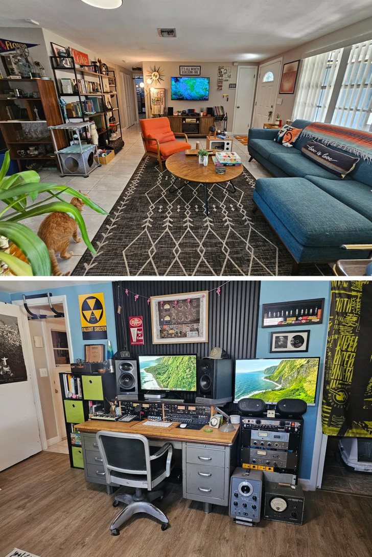 «Обустроил себе рабочее место на 9 квадратах. Мне, как отцу двоих детей, иногда хочется уединиться в своей „пещере“ и отдохнуть от работы и семейных дел»