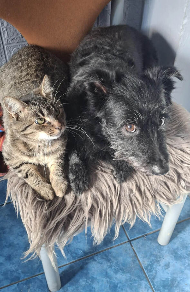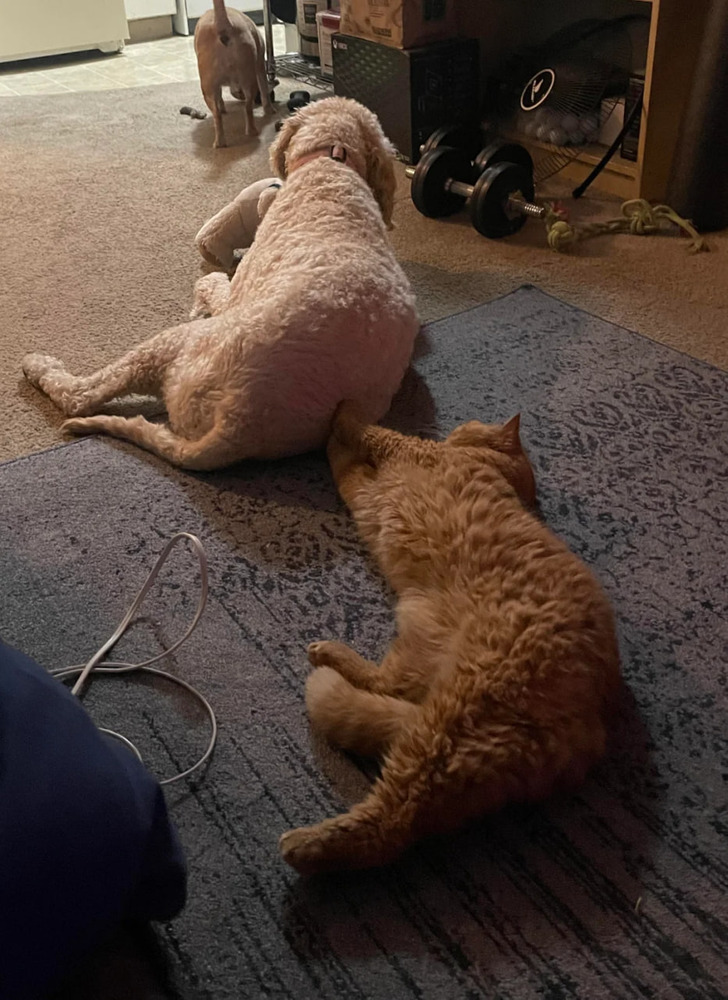 «Хотя они лучшие друзья, моя собака не любит обниматься. Поэтому кот прибегает к этому приему»