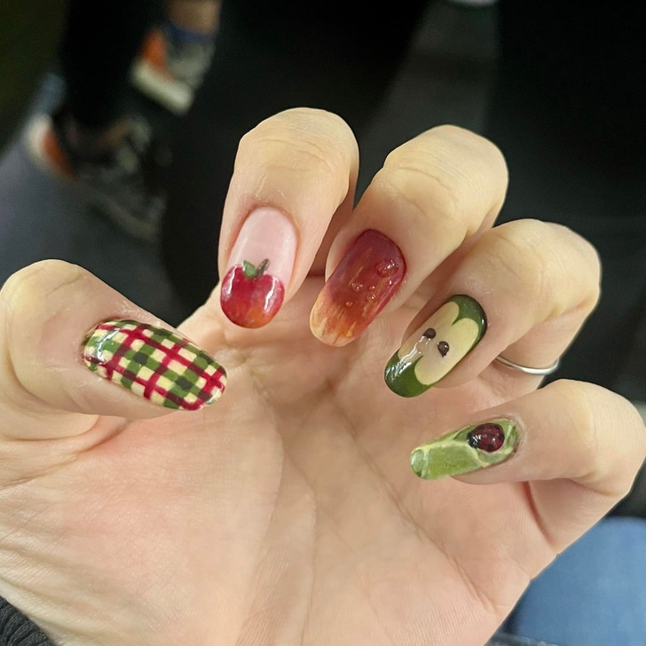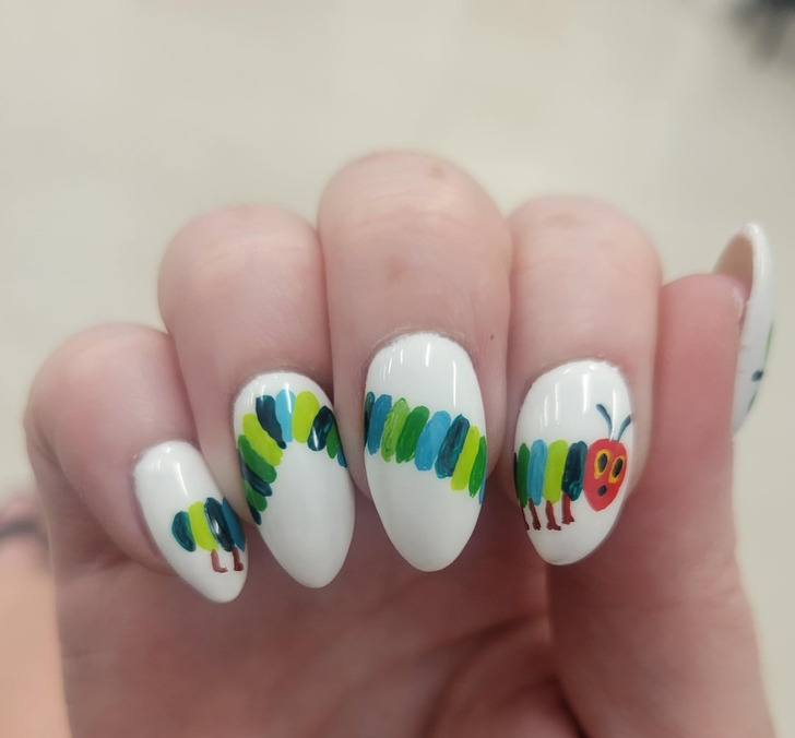 «Мой сын обожает книжку про голодную гусеницу. Так что я сделала себе такие ногти»