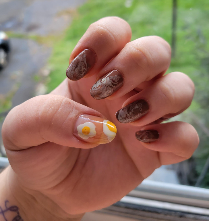«Сделала маникюр „Завтрак“. Тут у нас яичница с кофе»