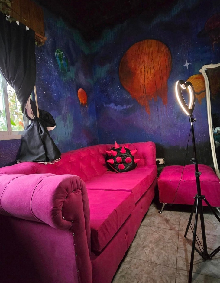 Ярко-желтый ковёр дополнил бы эту какофонию цвета.
