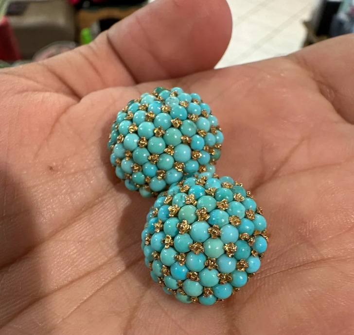 «Я в шоке! Мама купила на блошином рынке несколько пар сережек по доллару. Одна пара оказалась из 18-каратного золота и бирюзы!»