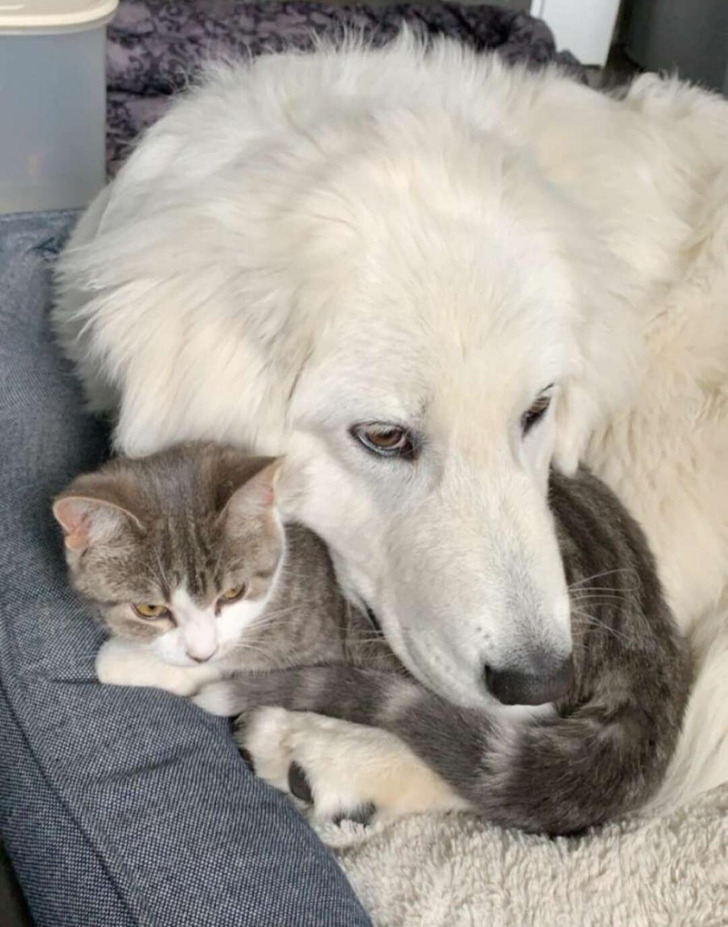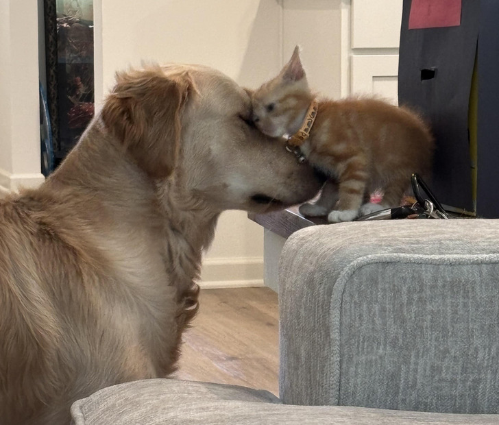 «Моя огромная собака и мой крохотный котенок обожают друг друга»
