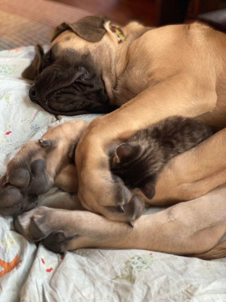 «Приемный котенок уснул в объятиях нашего мастифа»
