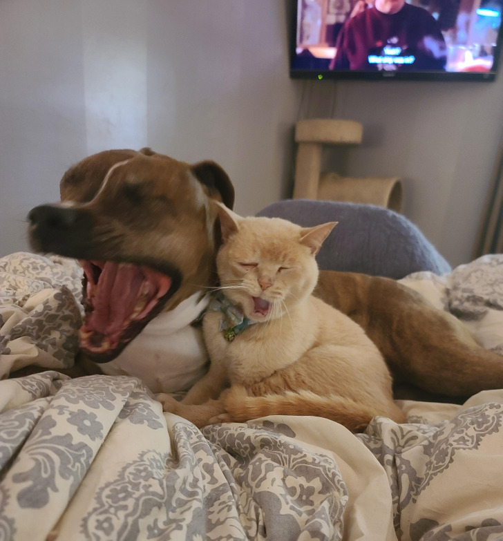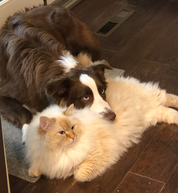 «Мы очень переживали, что наша кошка не поладит с новой собакой. Но посмотрите, как они проводят каждый вечер»