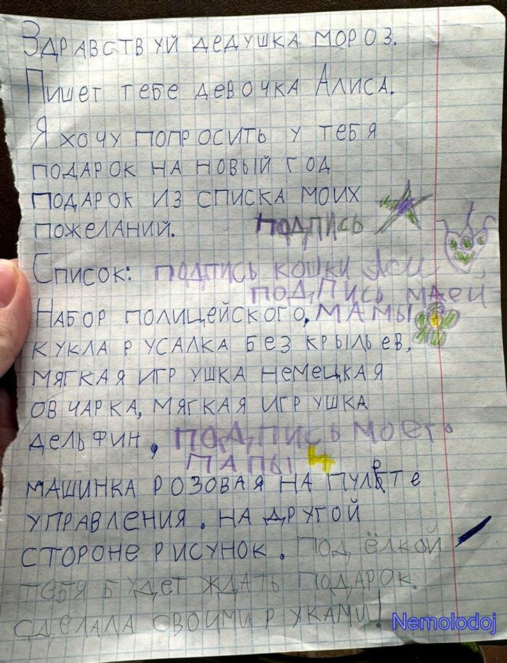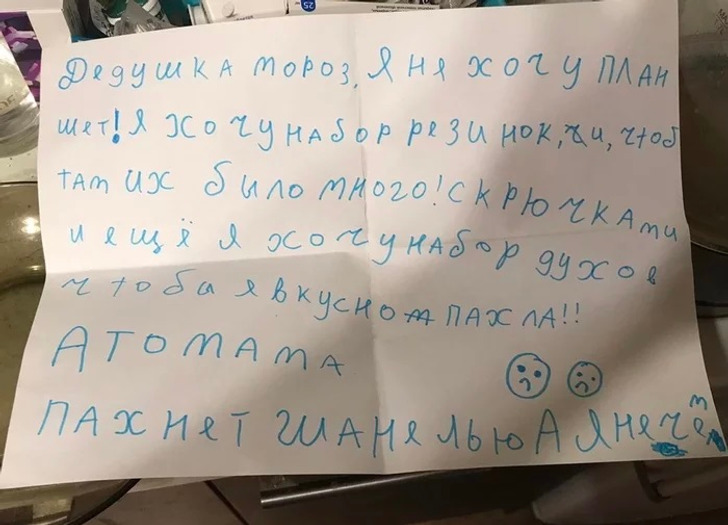 «Спрашиваю у дочки, что она попросит на Новый год у Деда Мороза. Говорит, нужна пижамка и краски на кружок по рисованию. Читаю потом письмо. Что-то пошло не так»