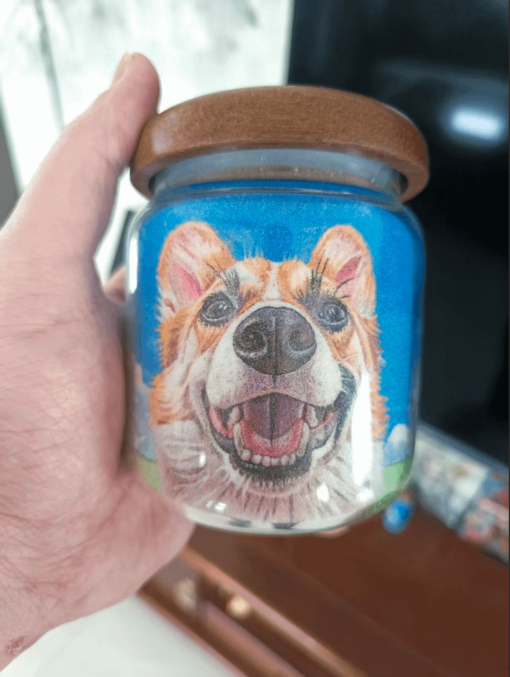 «Сделал портрет собаки моего друга. Да, это просто банка с песком»