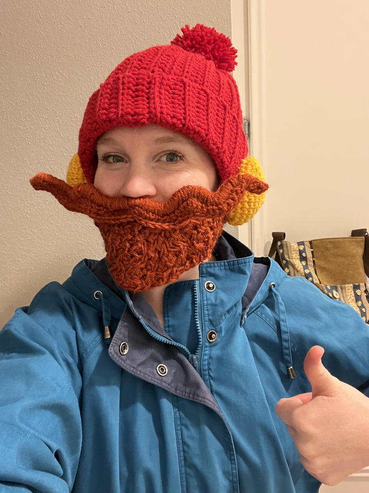 «Я устроила костюмированную вечеринку и связала на нее такую шапку. Без схем, чистая импровизация»