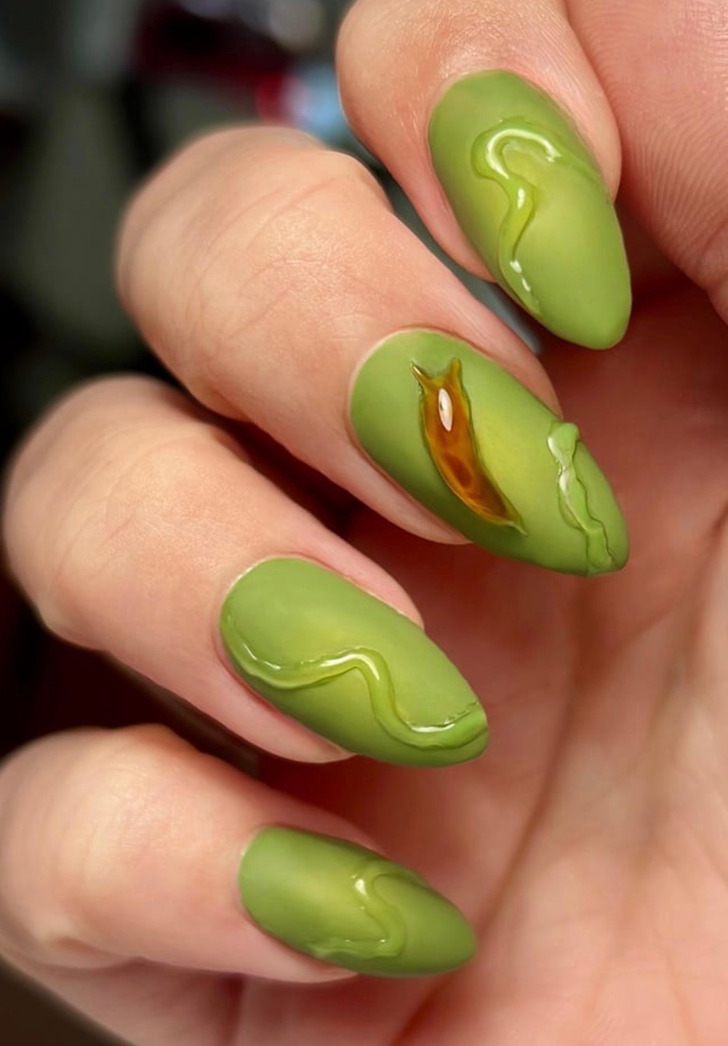 Ногти с 3D-дизайном снова в тренде. Поэтому особо смелые дамы могут не ограничивать себя в выборе необычного декора. Например, как эта милая улиточка на ногтях.