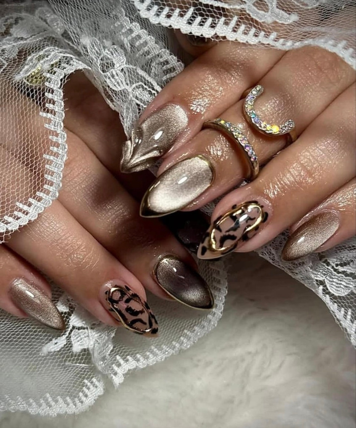 Животные принты на ноготках, кажется, еще долго не выйдут из моды. Но и трудно отрицать, что этот дизайн смотрится очень стильно.