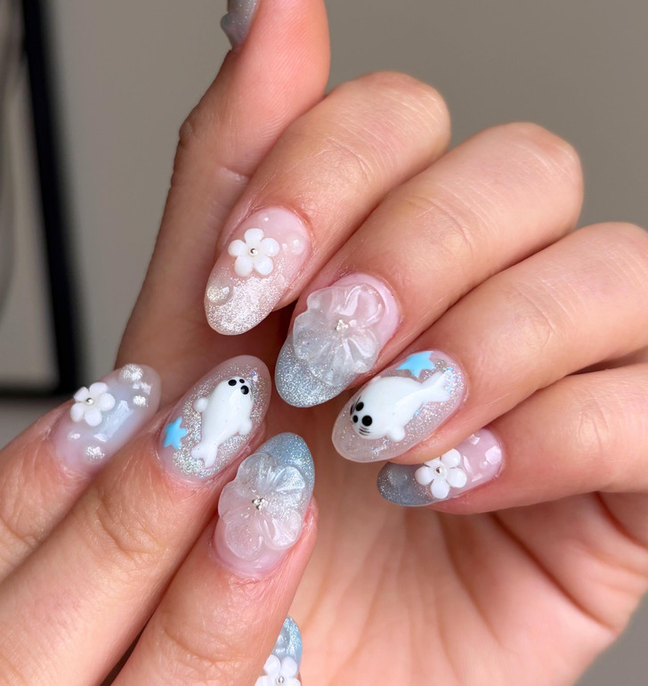 «Ноготочки на день рождения! С тюленчиками. Мой мастер маникюра, как всегда, на высоте»