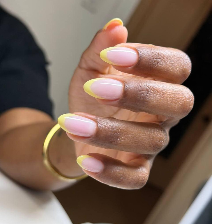 Феи красоты в этот раз советуют не бояться экспериментов с французским маникюром. Лимонный, синий или даже разноцветный — это все сейчас на пике популярности.