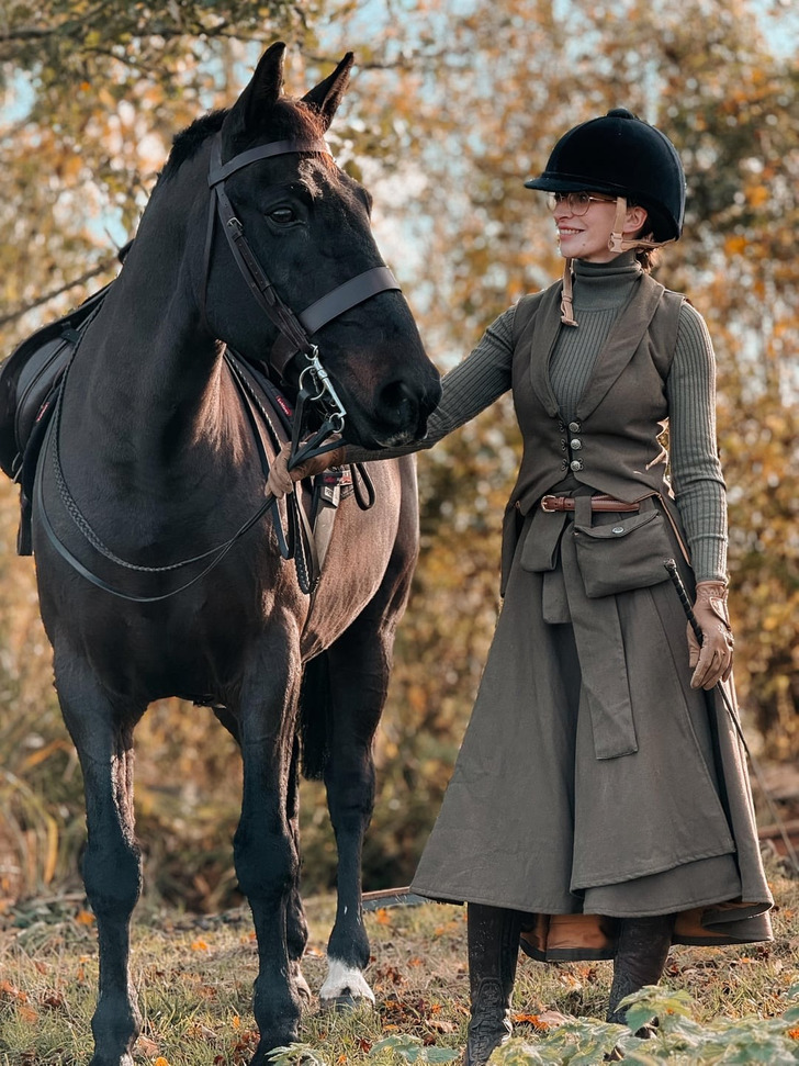 «Первые вещи, что я сшила. Жилет, юбка и сумка для верховой езды. Просто не передать словами, в каком же я восторге от них!»