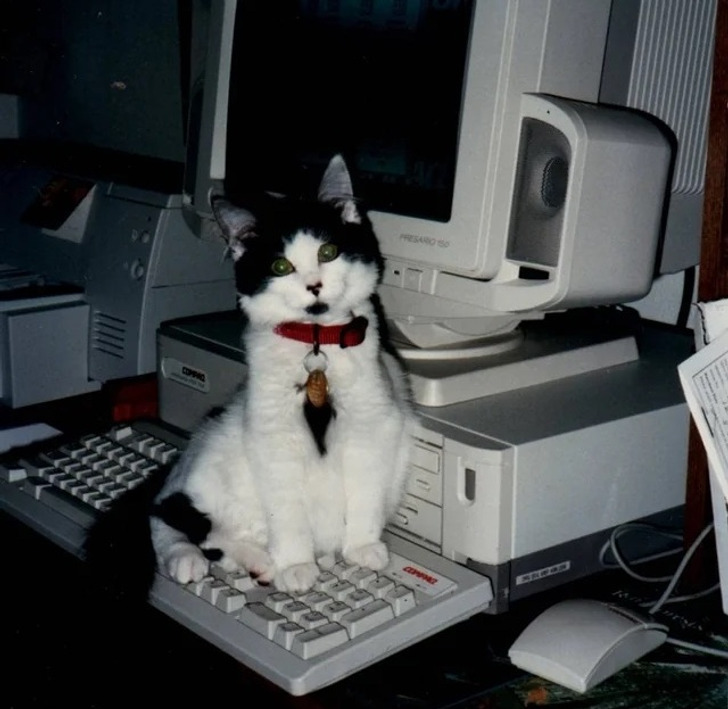 «Мой потрясающий кот и мой потрясающий компьютер прямиком из 90-х»