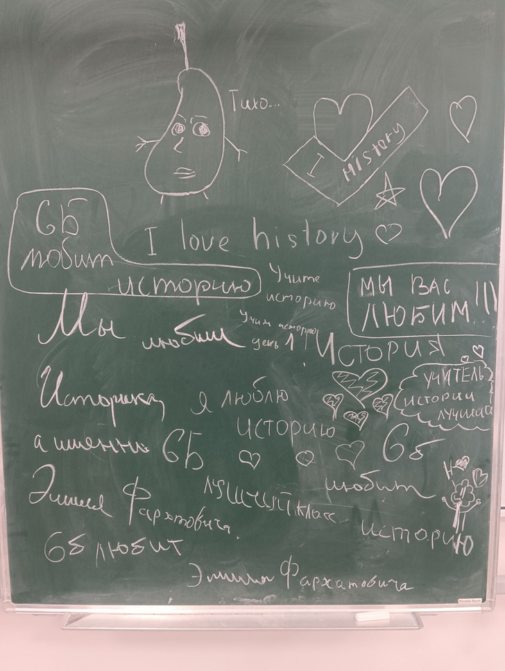 «Я люблю историю. Учитель истории лучший. 6Б любит историю»