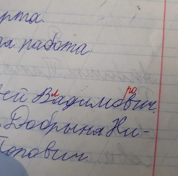 «На днях попалась тетрадь знакомого ученика Матвея Вадимовича. Учительницу отчество не устроило»