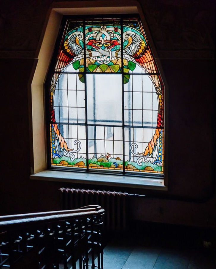 «Особняк А. Ф. Гейденрейх. Прекрасно сохранился стеклянный световой фонарь, что не часто встретишь в питерских парадных»