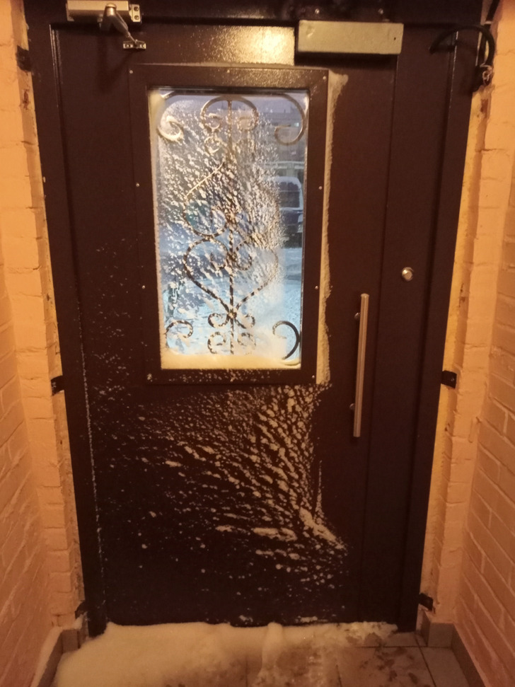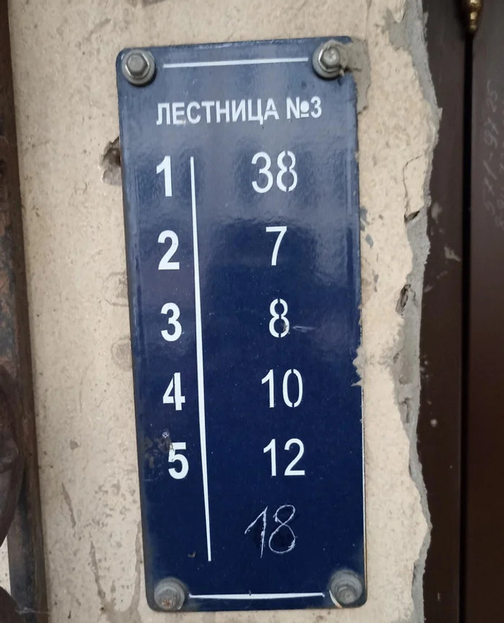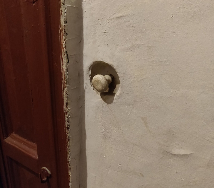 «Живем с семьей сейчас в мини-отеле в городе на Неве. Отель представляет собой переделанную трехкомнатную коммуналку. На остальных этажах, в моем понимании, живут местные жители. Отель находится на третьем этаже и когда мы поднимаемся, то видим около дверей других квартир на нижних этажах вот это»