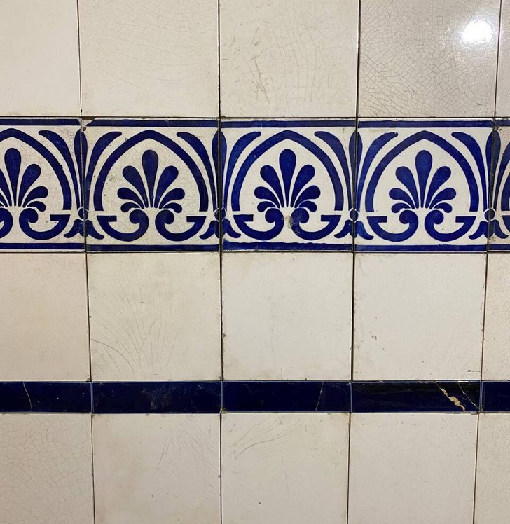 Бережно сохраненная дореволюционная плитка, наверно, была сто раз закрашена, и потом зачищена обратно.