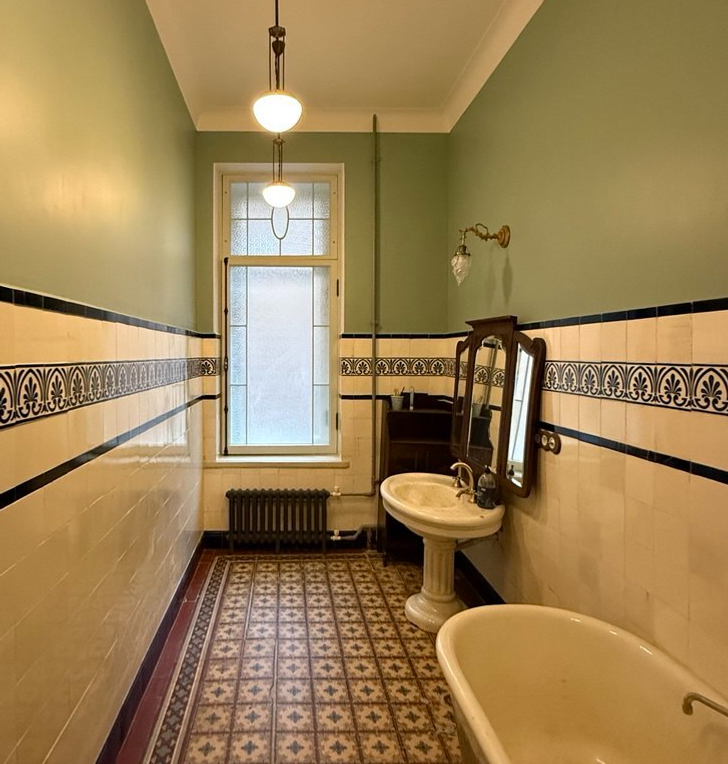Уважение людям, которые не жалеют средств на реставрацию. Очень душевно, и соответствует зданию, помещению. Единственный момент, что плитку явно подбирали под оттенок старой, которая "в юности" была более белой и яркой, соответственно, восстановленный вид не соответствует оригиналу в том виде, как его создавали.