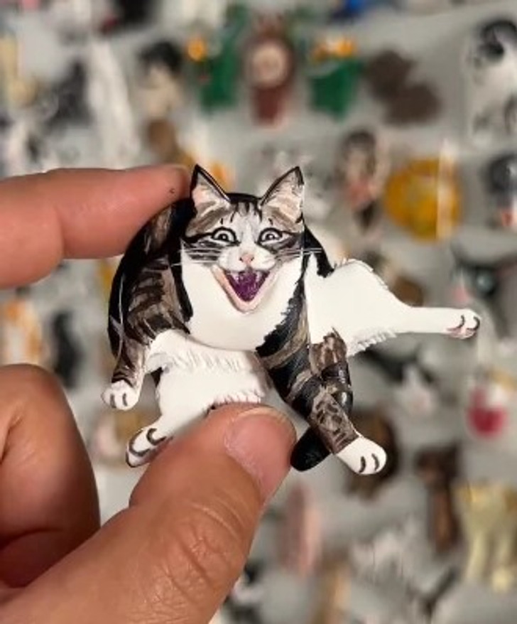 «У меня есть смешная фотография моего котейки. Сделала по ее мотивам магнитик из глины»