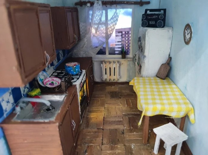 «Вот я и закончила миниатюру кухоньки. Сделано из подручных материалов»