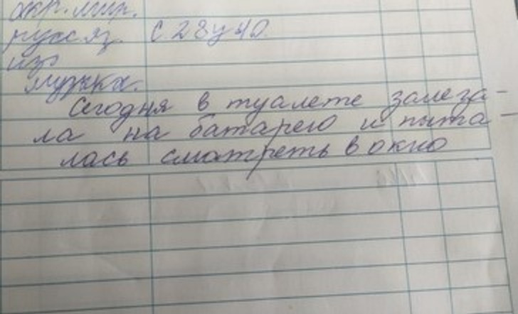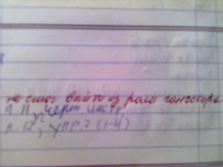 - Как-то я нашла дневник мужа. Один момент там просто шедевральный, до сих пор смеюсь в голос. Каждый день в течение недели на одном и том же предмете было замечание: «Ходил по классу!» А в пятницу учитель, видимо, не выдержал и написал: «Товарищи родители, примите меры! Пусть Николай перестанет ходить!» © mashakuzmina5760 / YouTube