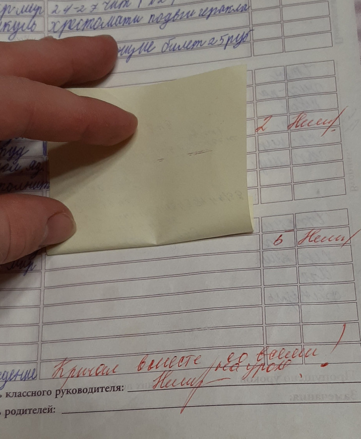 мне больше интересно, что в дневнике написано под закрывающей записи бумажкой!