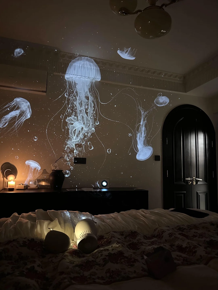 «Обычно проецировала картинки на потолок, но медузы, плывущие и пульсирующие на стене, выглядят невероятно красиво»