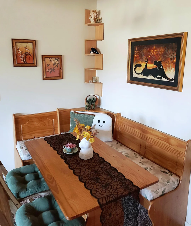 «Этот обеденный гарнитур раньше стоял в подвале у родителей, а потом я забрала его себе. Такой уют и ностальгия!»