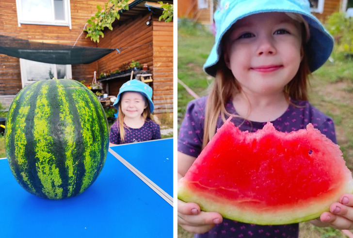 «Наш сибирский урожай! Созрел первый арбуз, 9 кг. Очень сладкий!»