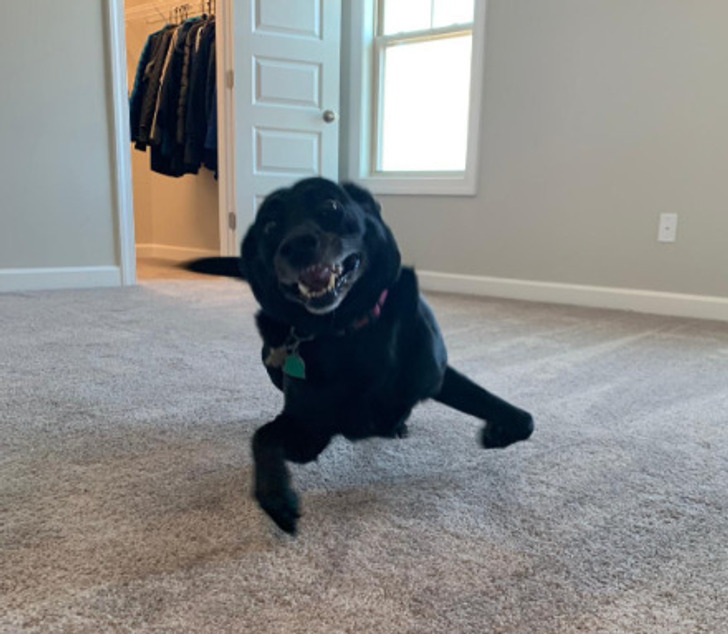 «Первая реакция моей собаки на ковровое покрытие в нашем новом доме. Думаю, она в восторге»
