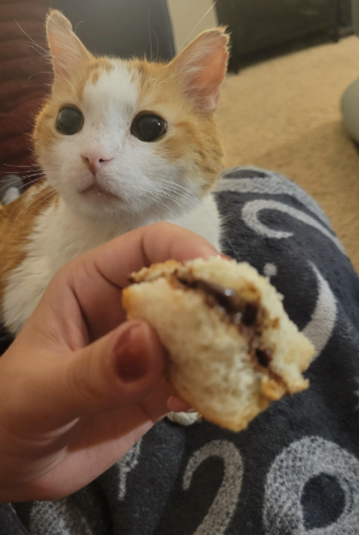 «Посмотрите как он клянчит шоколадную пасту. У него аж слюнки потекли»