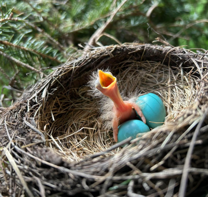 Упало вместе с гнездом? Или гнездо на земле было? Тогда его бы обнаружили раньше