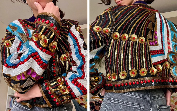 «Безумный жакет-болеро из индийского шелка, полностью расшитый бисером»